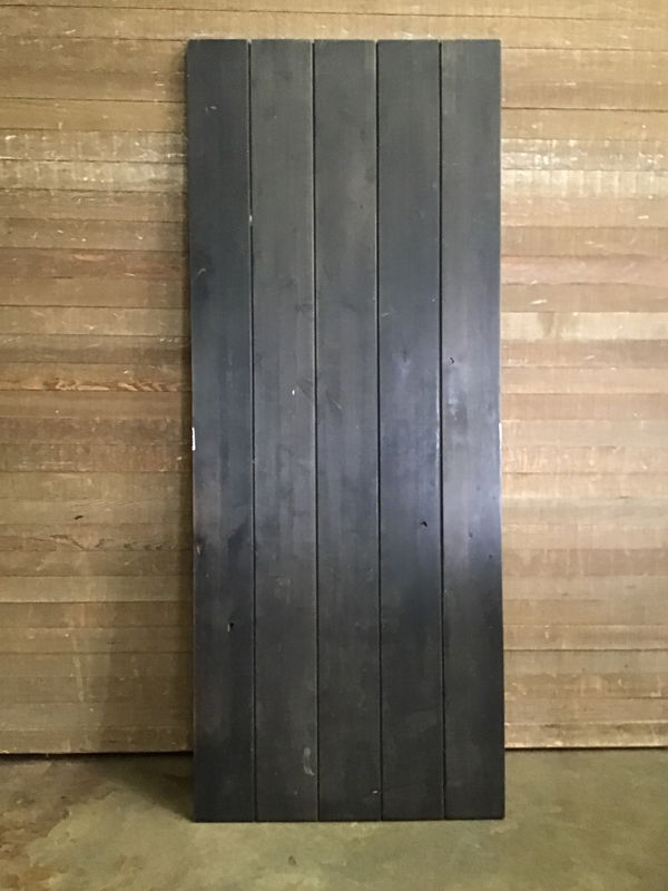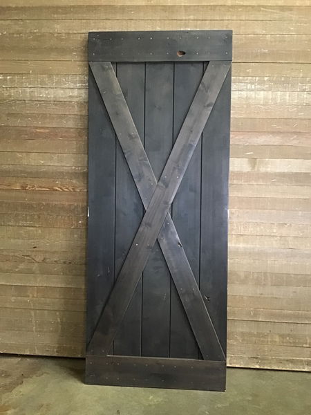 Large plank Z strap construction dark stained barn door. Could make a cool looking backdrop or a sturdy slider/carriage door.