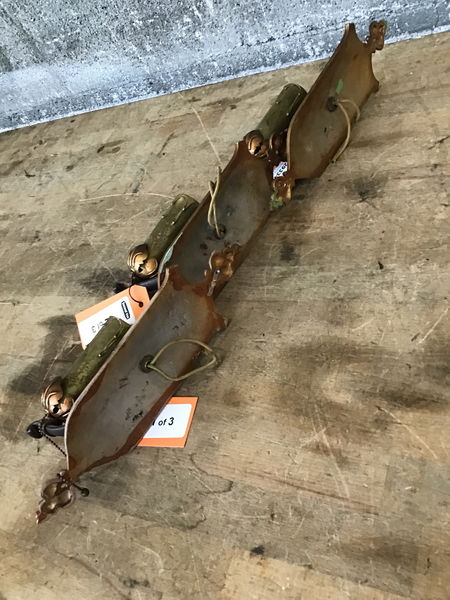 Set of three vintage wall sconces that look to have their original paint job over the cast aluminum body. Each has a pull chain switch. Wiring looks original too. If you’d like to get this light fixture rewired here at Second Use, please check out our in-house Lighting Services.
