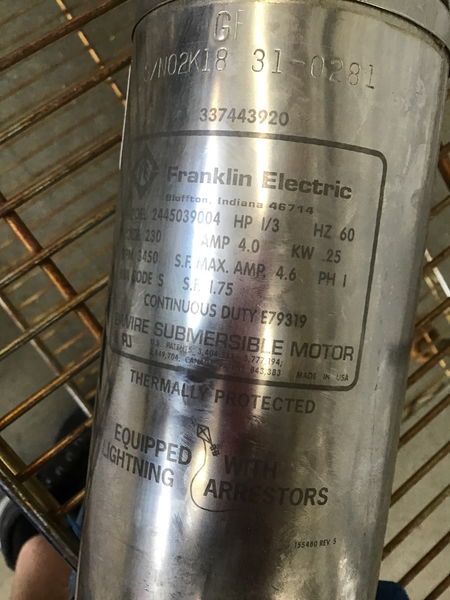 Grundfos 10S03-6 submersible pump, designed to independently pump groundwater into your home. All stainless steel, very fancy, retails for over $1,000 (the motor alone is worth $800+). Sold untested.