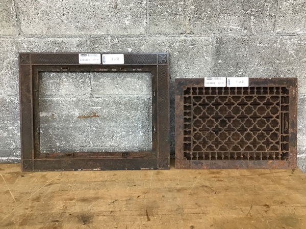 Ornate Cast Heating Grate with a clover pattern grate and an ornate frame with fleur-de-lis on the corners.