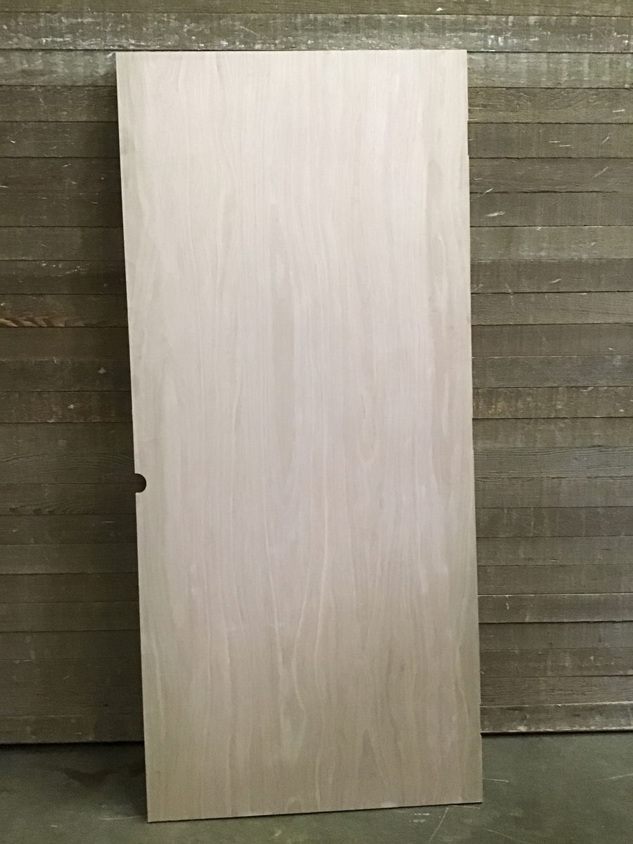Unfinished wood slab door in great shape except for that it was cut down on the door hardware side. May not have enough meat left on the stile to get a good hole bored for hardware. Still in good enough shape to be worth using for many other projects.