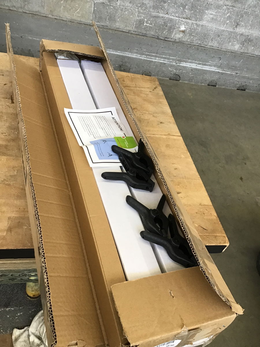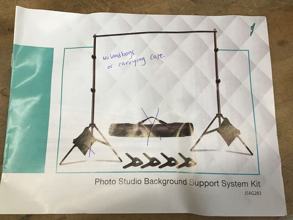 Simple system of two tripods with an extendable beam in the middle, for supporting a photo backdrop (not included).