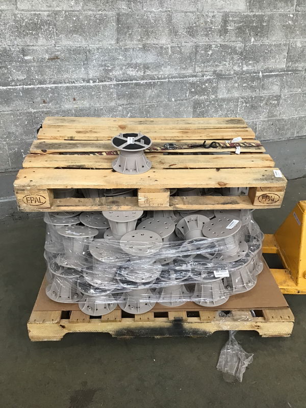 Pallet of (I think) seventy-five Hanover 3" Elevator Pedestals for use with a paver system that's raised above grade. Minimum height is listed. Looks like maximum is ~6 3/8". Some may be missing a "tab" or two for squaring up the corners of the pavers. Price reflects condition.