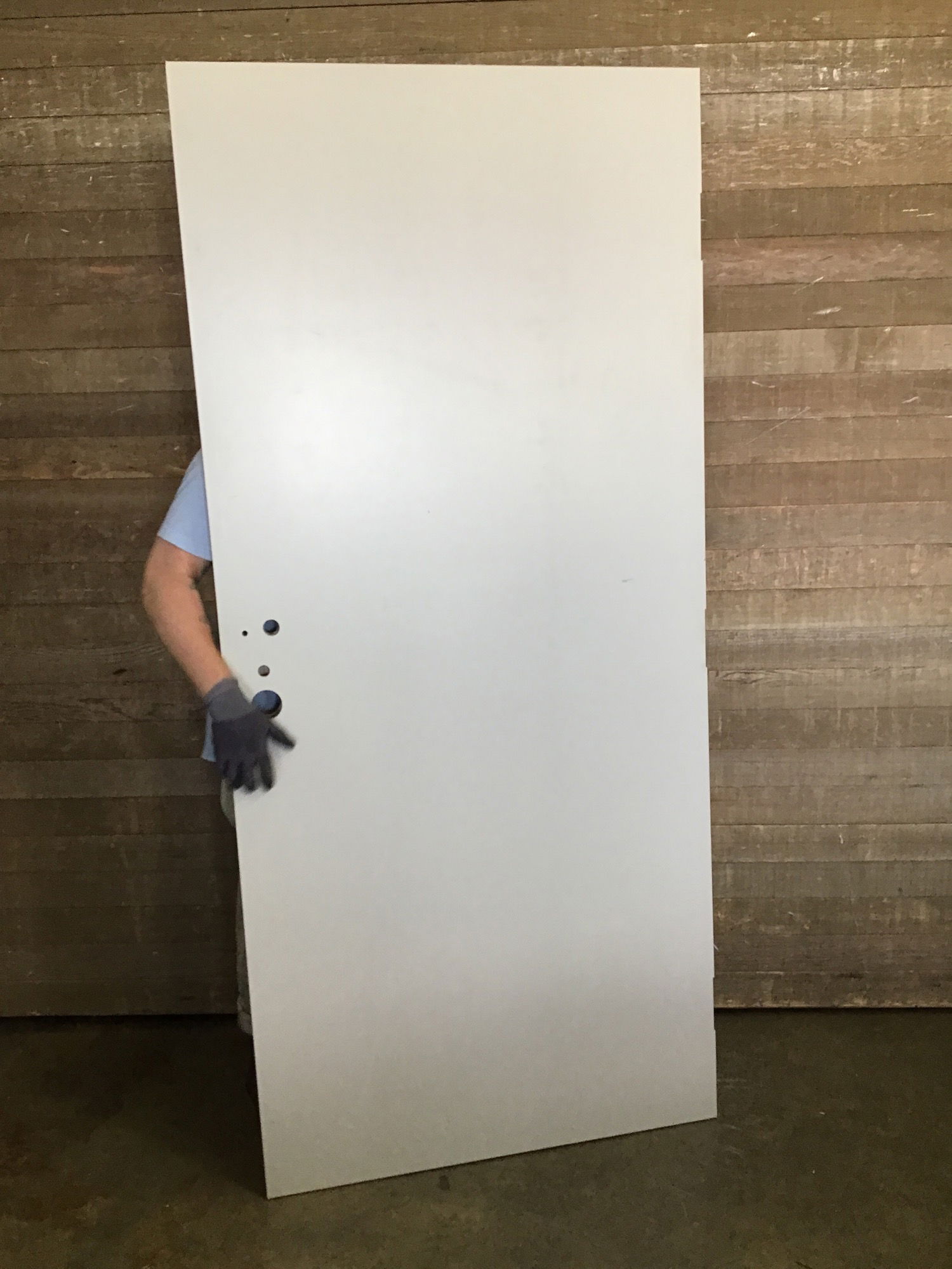 Very heavy, commercial interior fire door with right hand swing hinge cuts and exterior thickness. Some minor cosmetic damage otherwise is good condition!