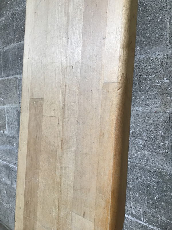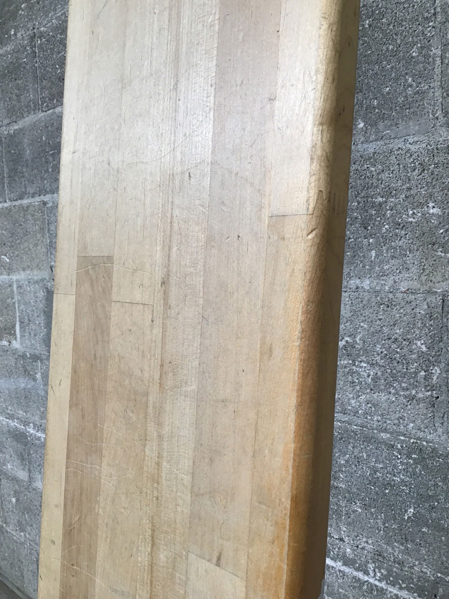 Maple locker room bench seat that's finished on all sides and overall in great shape. Has a few screw holes on one side and light general scuffs and dings from years of butts and feet crawling all over it. May have graffiti, gum, etc.
