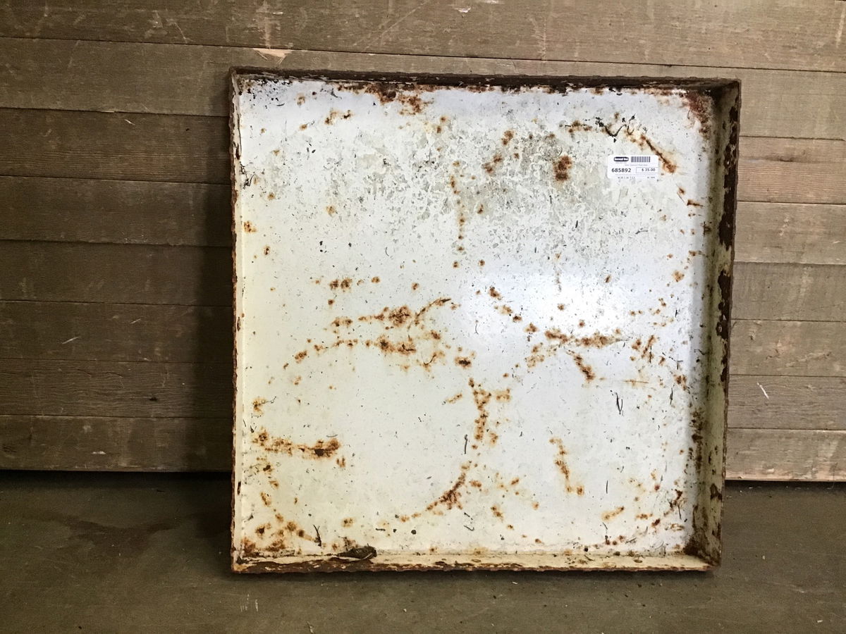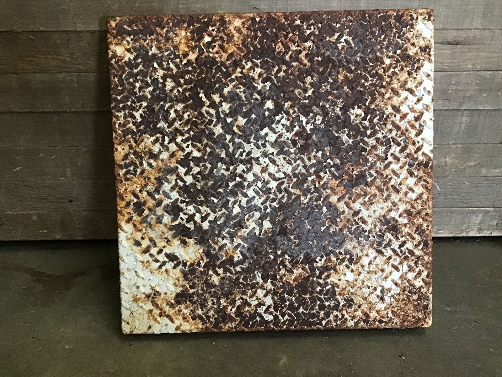 Steel diamond plate base that looks like it may have been the base to a scale or something similar. It has a lot of surface rust, but if the right person were to clean it up, it would make a great table top! Price reflects condition. Thickness listed is the depth of the piece, thickness of the metal itself is 3/16".