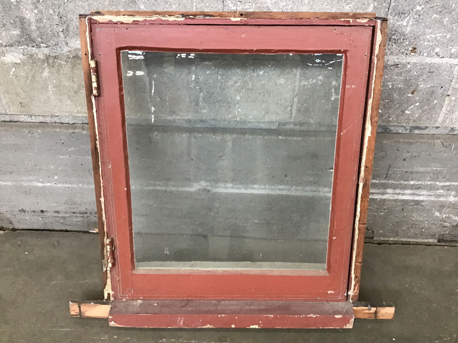 Wood framed sash window, designed to open casement style, has wavy glass.