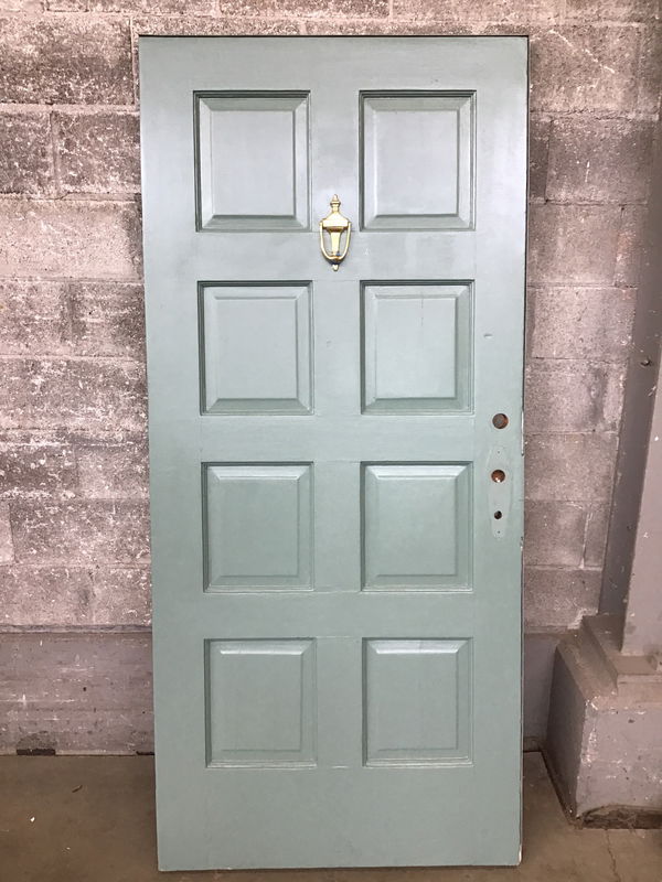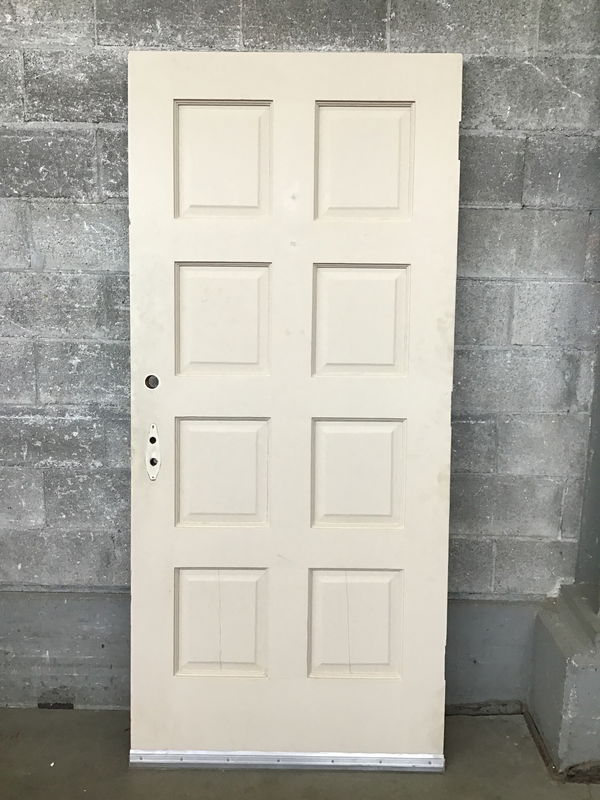 Vintage entry door with 8 raised panels and mortis lock (not included) The last owner installed the door knocker in an odd way and plastered over the mounting holes so it's staying put unless you really try to get it off. Price reflects all of this... and it's J-stripped.