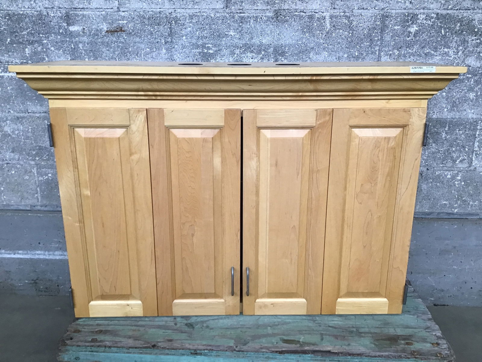 Custom built Maple upper cabinet with two bifolding doors, could be used as a base if you really wanted.