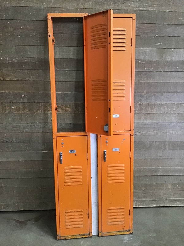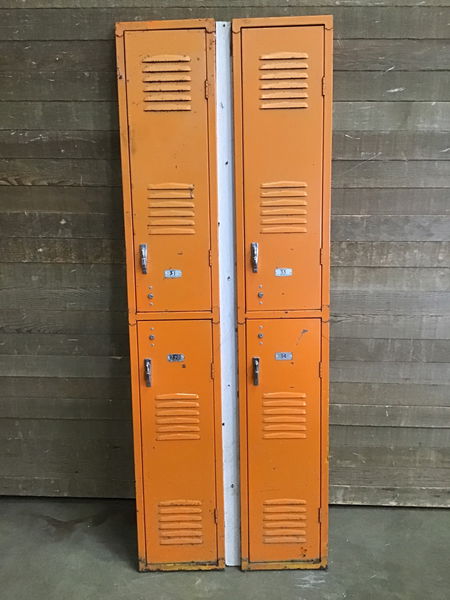 Front part of a 4 locker bank screwed together to make a cool background/ wall decor.