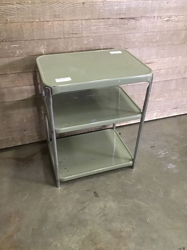 Cute little vintage steel table that was once a Cosco rolling utility/bar cart. Now will just make a nice table or shelving.