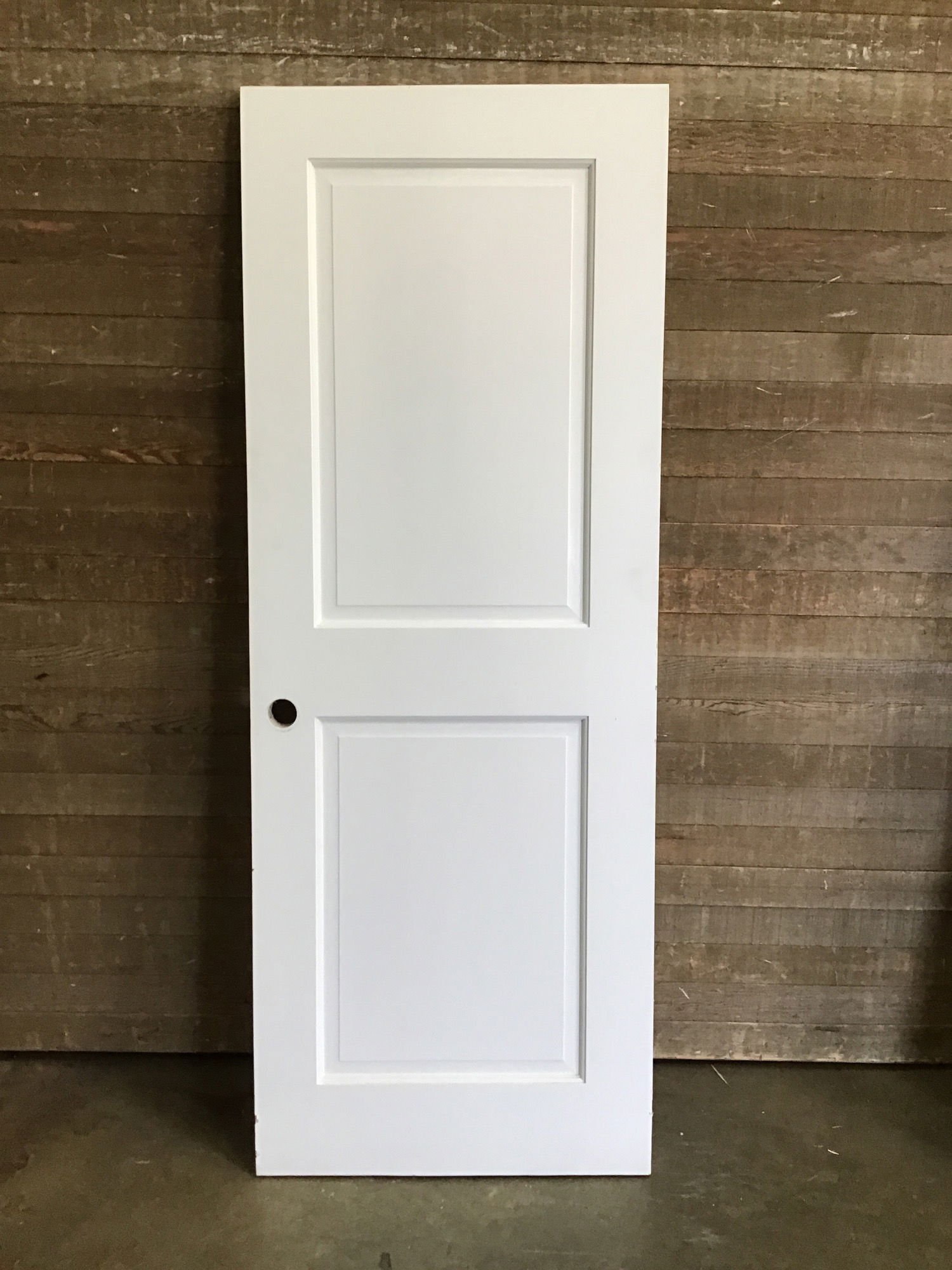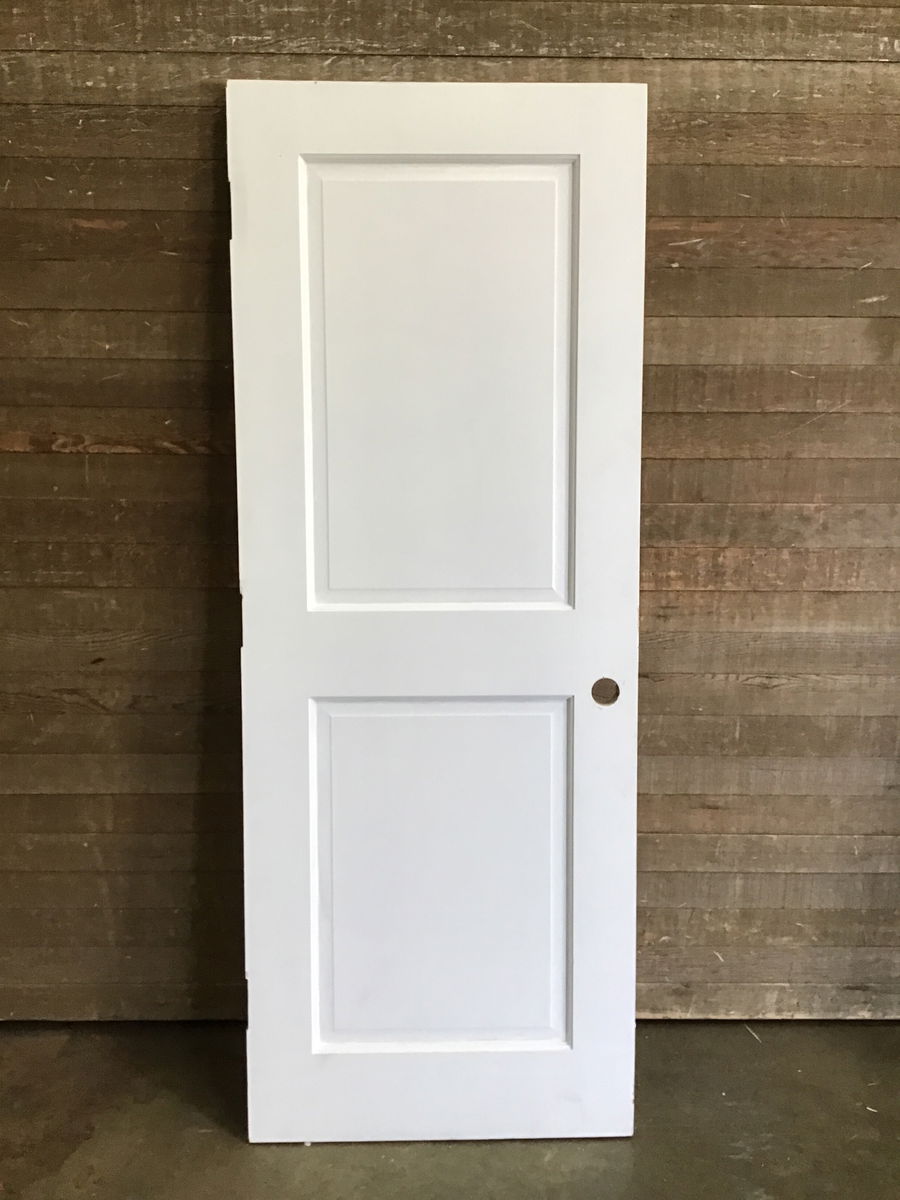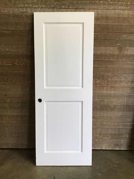 Interior two panel door with an exterior thickness. Made of a solid softwood and in used decent shape.
