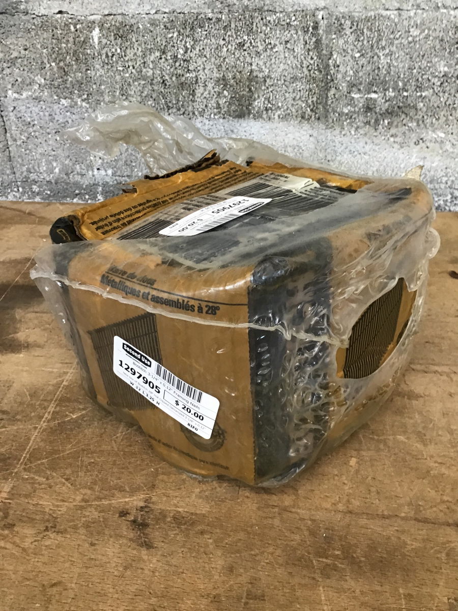 New box of Bostitch 28° Hot-Dipped Galvanized 3-1/4" x 0.12" Smooth Shank Collated framing nails (2000 per box). These go for $93 new.