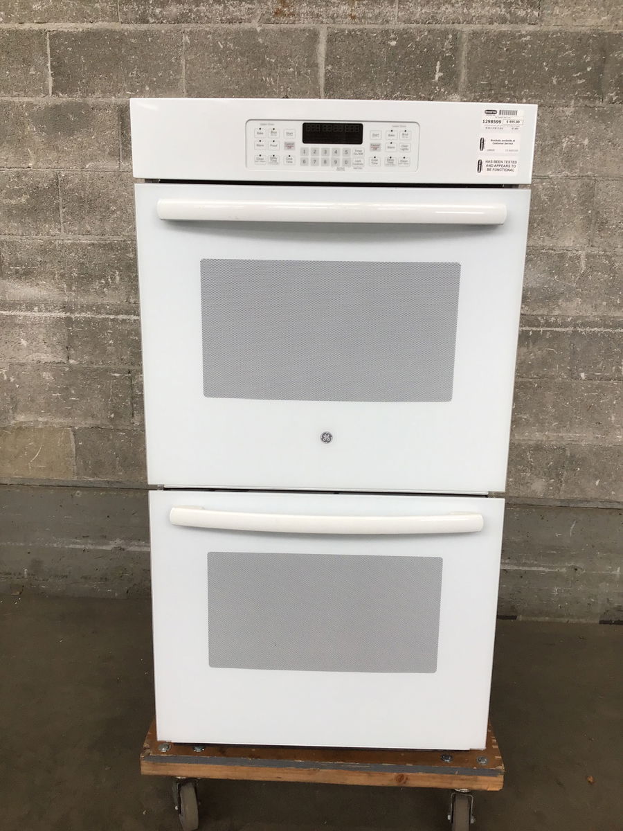 GE double wall oven, both ovens have been tested and appear to be functional. Clean! Manufactured in 2018.