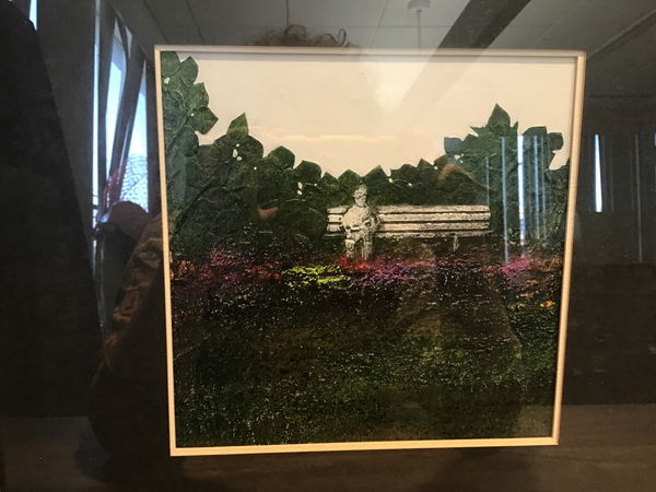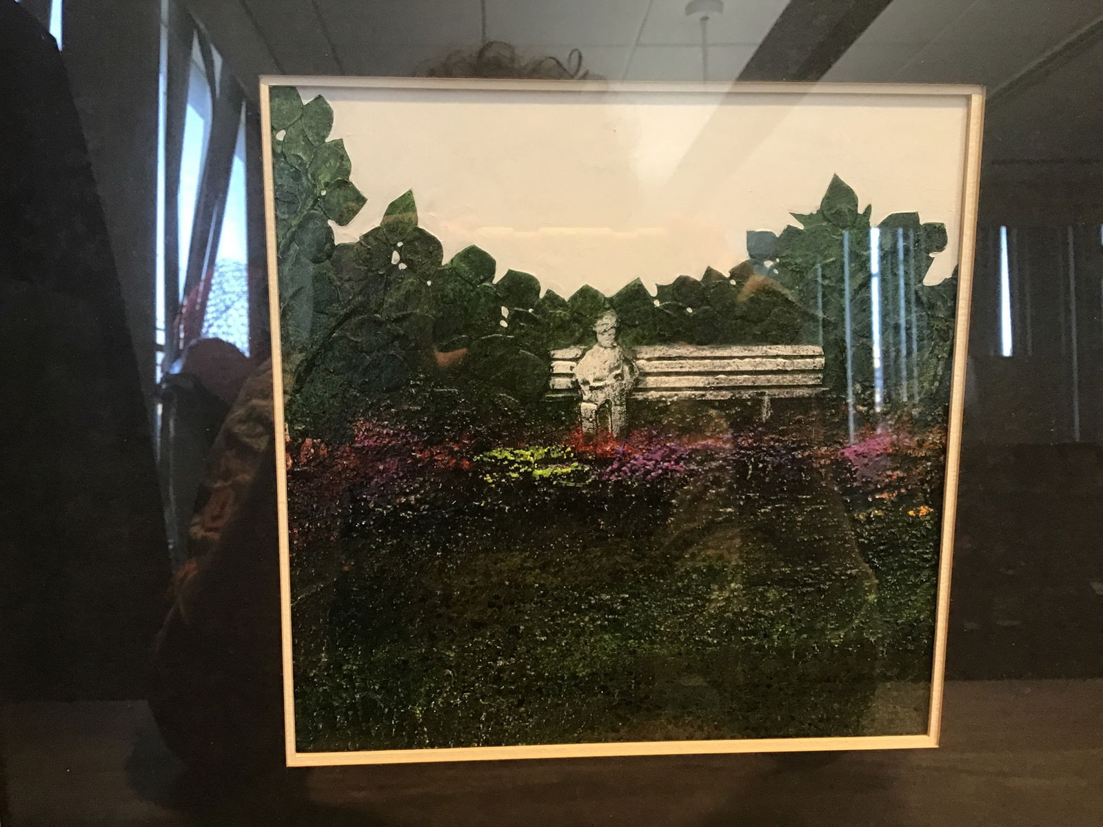 Local artist Darrell Peterson is from right here in Seattle, and has been working with acrylic and textured paintings for over 50 years. This painting is titled "Boy on a Bench" and shows us a lone boy on a white bench surrounded by color with textured acrylic on the flowers and leaves. Beautifully framed in a double mount with a solid wood frame in excellent condition.