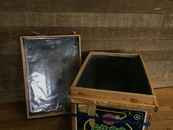 Vintage Japanese tea crate with tin lining interior and wooden exterior. Looks authentically used but not abused. Such a sweet piece of history!