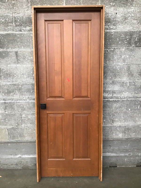 Good-looking VG fir door with average cosmetic wear and newer privacy knob. Overall a nice door and ready to go if you don't mind a slightly distressed look.