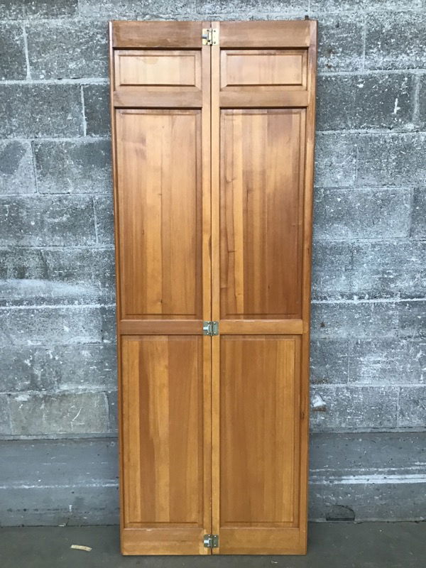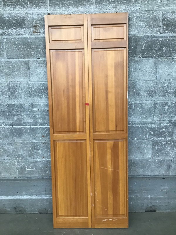 VG fir raised panel bi-fold door, it is a bit distressed cosmetically but bones are good. Needs hardware.