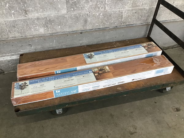 Here we have two full boxes of laminate wood flooring by Harmonics. The two boxes can roughly cover 40 square feet.