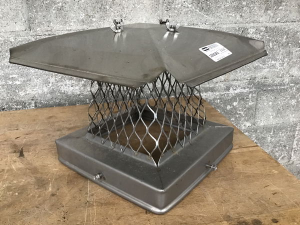 Stainless steel chimney cap that would fit on a maximum 10 1/4" square (outside dimensions) flue or liner.