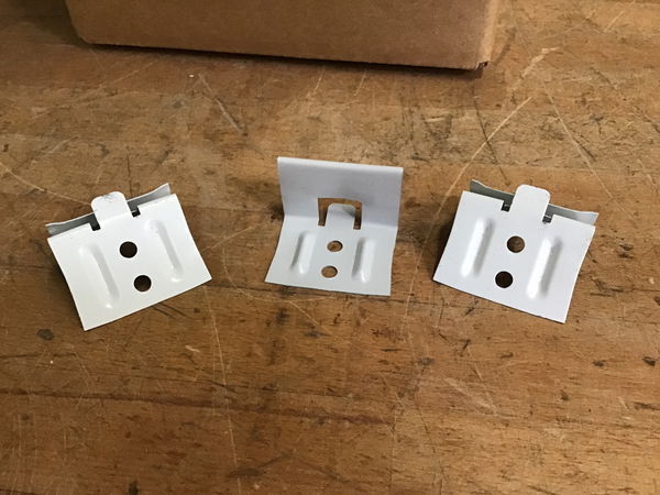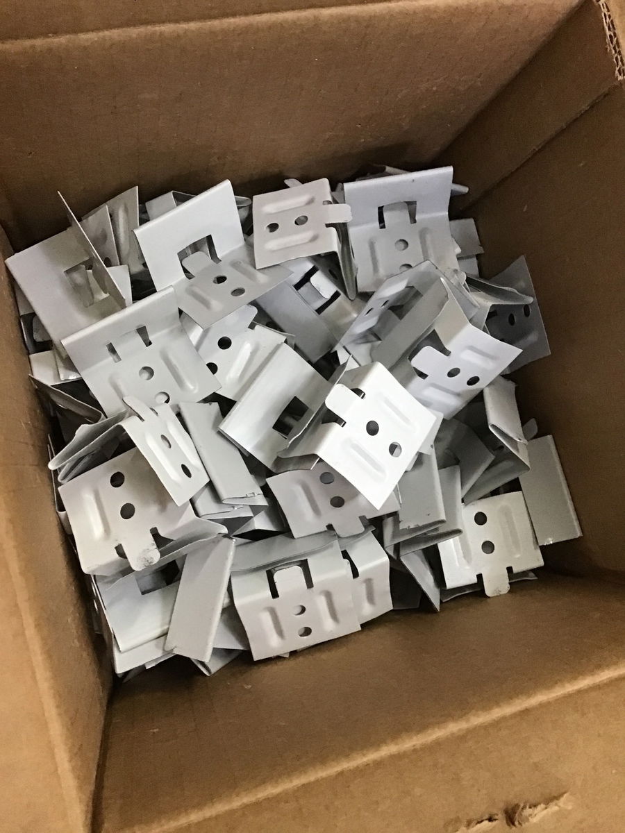 Box of 24 gauge snap-lock panel clips. 2-hole, 2" wide, 1.25" tall.