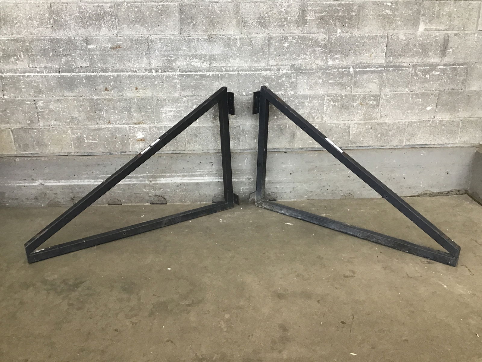 These are custom made roof supports for a roof section or awning. They were made by a professional welder, and in our supplier's words, "very expensive". There's a small bit of rust and some glue residue, but nothing that can't be wire brushed and repainted and made as good as new.
