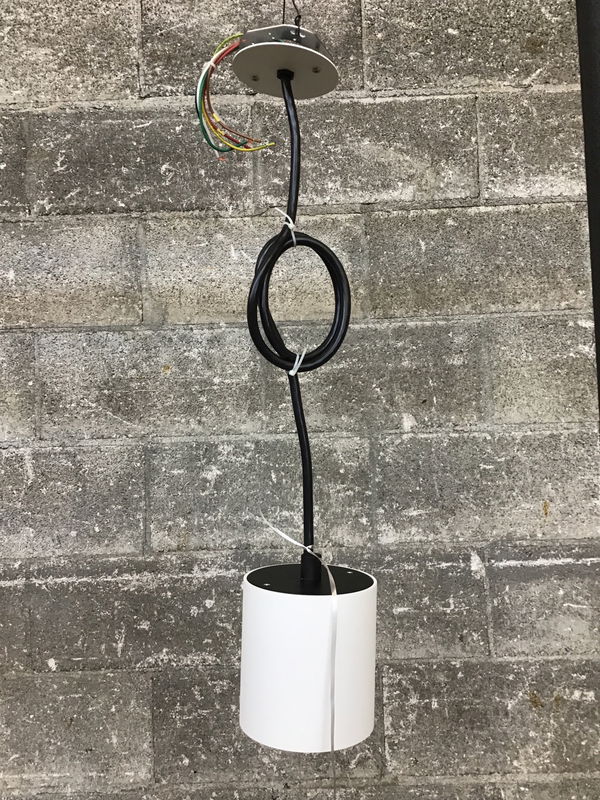 New in box Delta Boxy pendant light with a white finish. Cord is heavy duty and long enough to accommodate taller ceilings. Adjustable LED light to get the light in the perfect spot. This is a bulk item, no holds please.