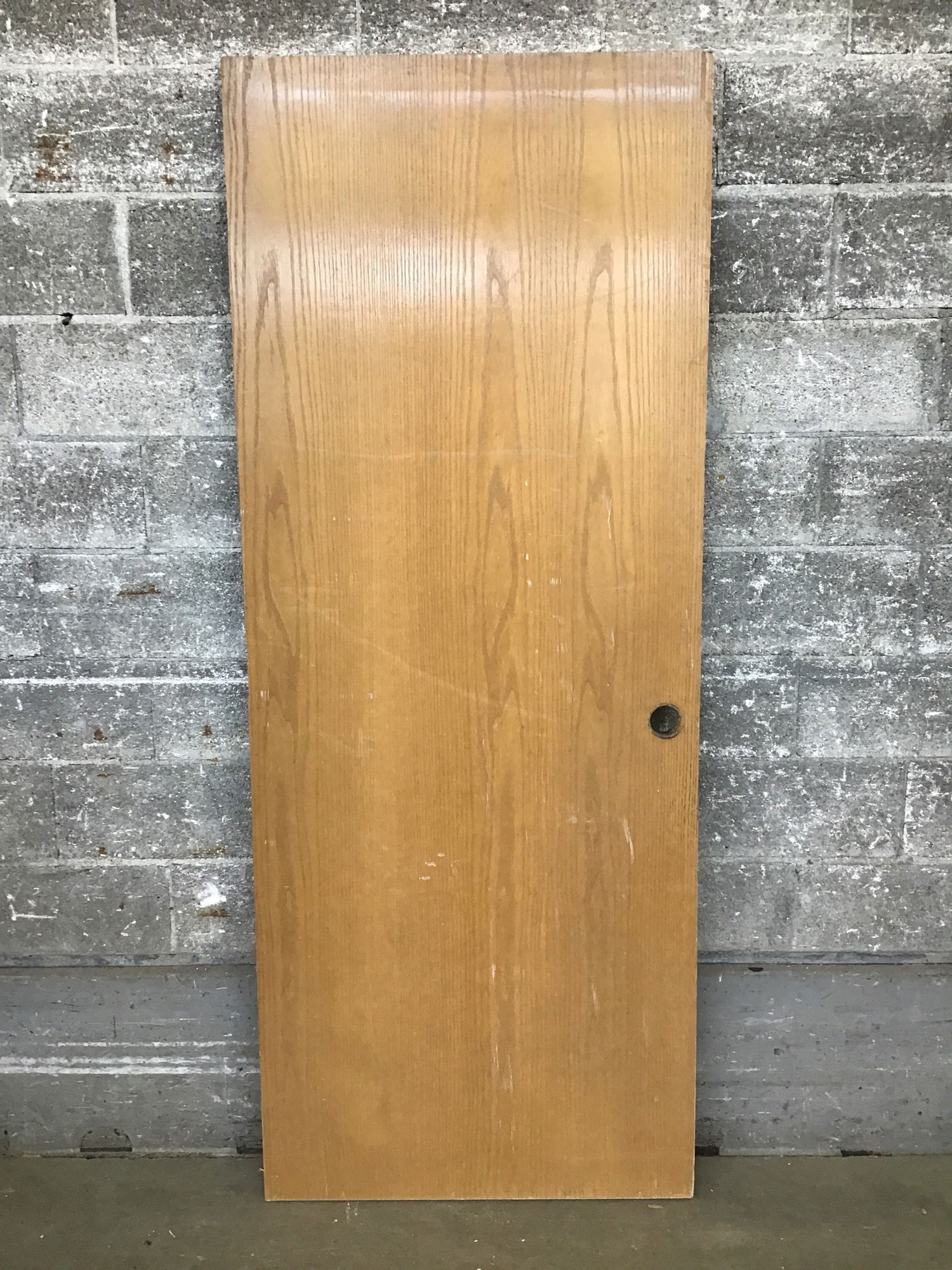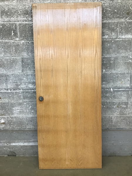 Wood solid core interior door, clear finish, no jamb and left hand swing. This door has seen some use and the price reflects.