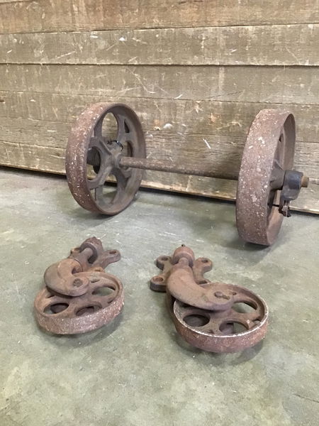 Made by Oregon's Western Foundry. Set of 2 wheels and 2 casters to build one of those old school railroad carts. Great for a rustic coffee table build. The swiveling casters could also make casters for a swing out barn door.