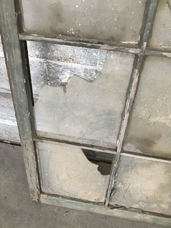 Twelve lite painted fir window sash that was said to have come from a Weyerhauser building up in Everett. Dimensions are approximate and could vary by as much as 3/4" in either direction. Price reflects there might be cracked or missing panes of glass. Start planning next springs greenhouse or grow your own hothouse tomatoes.