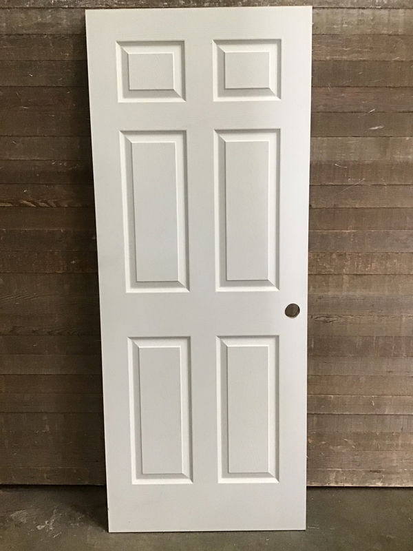 Solid core MDF faux paneled oak pattern interior door. In great shape and never installed before, though may have some minor cosmetic imperfections.