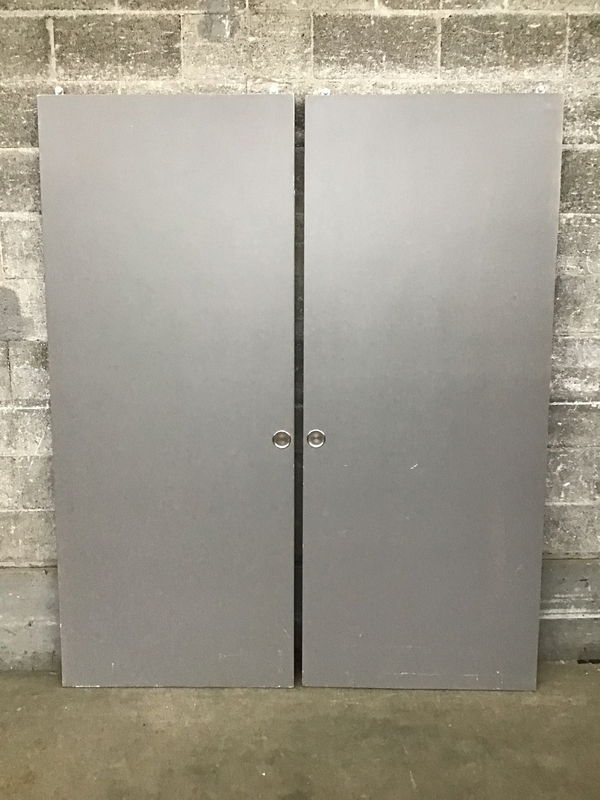 A pair of hollow core slabs with hardware to work as barn/closet doors.