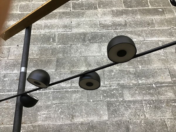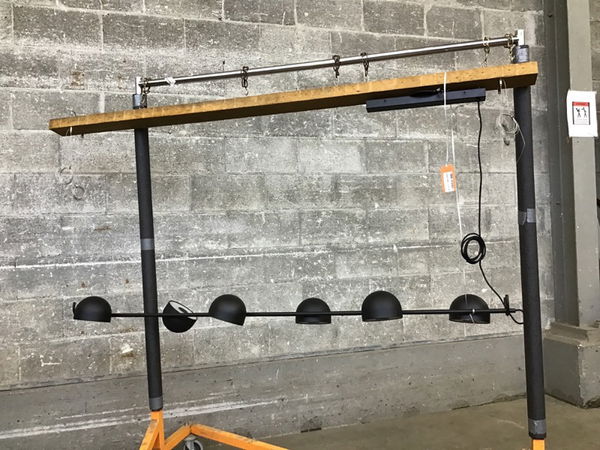 Bowee S6 model gallery style hanging linear pendant light. Black finish, six adjustable lights. Height is widely adjustable. This model retails new for $3300+. Photo may be representational.