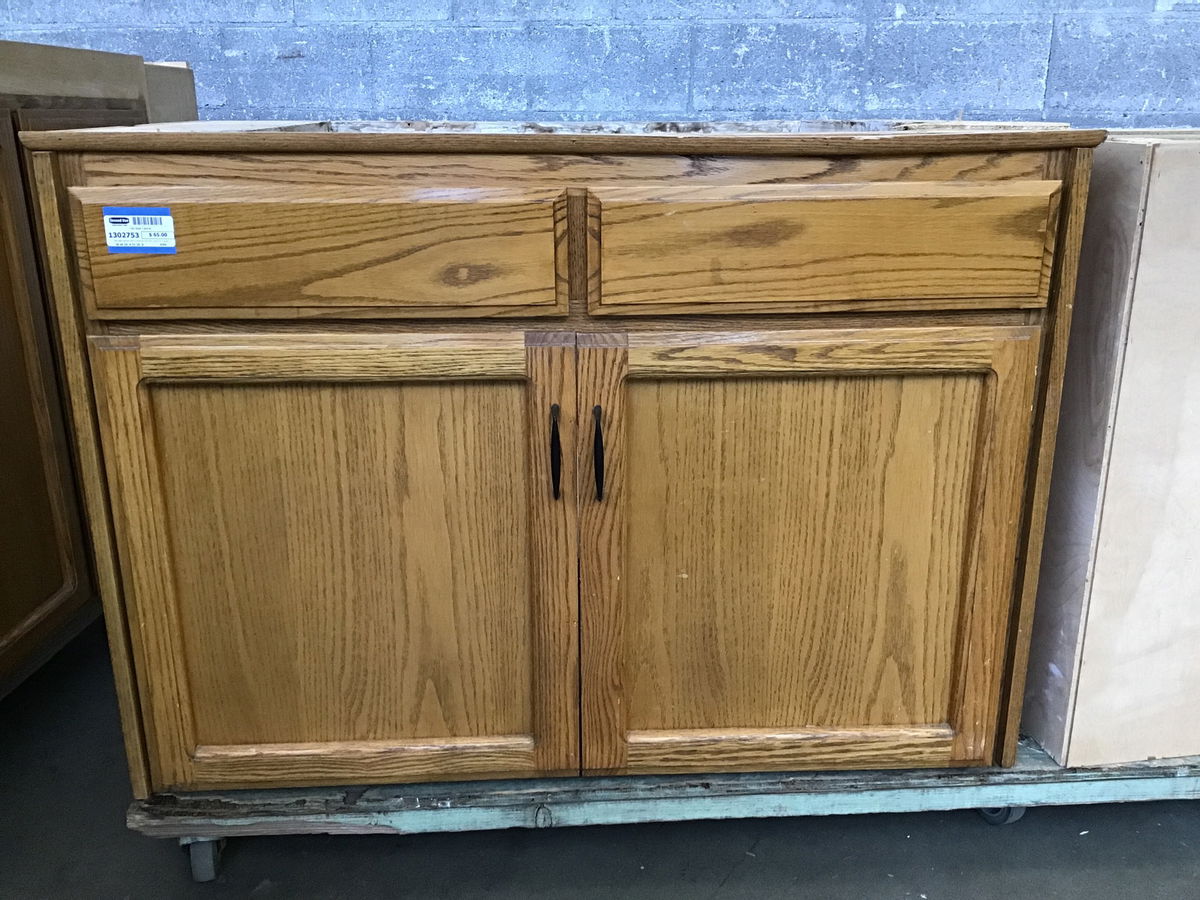 Oak base cabinet with a plywood box and cutout for a large sink. Would make a great shop cabinet.