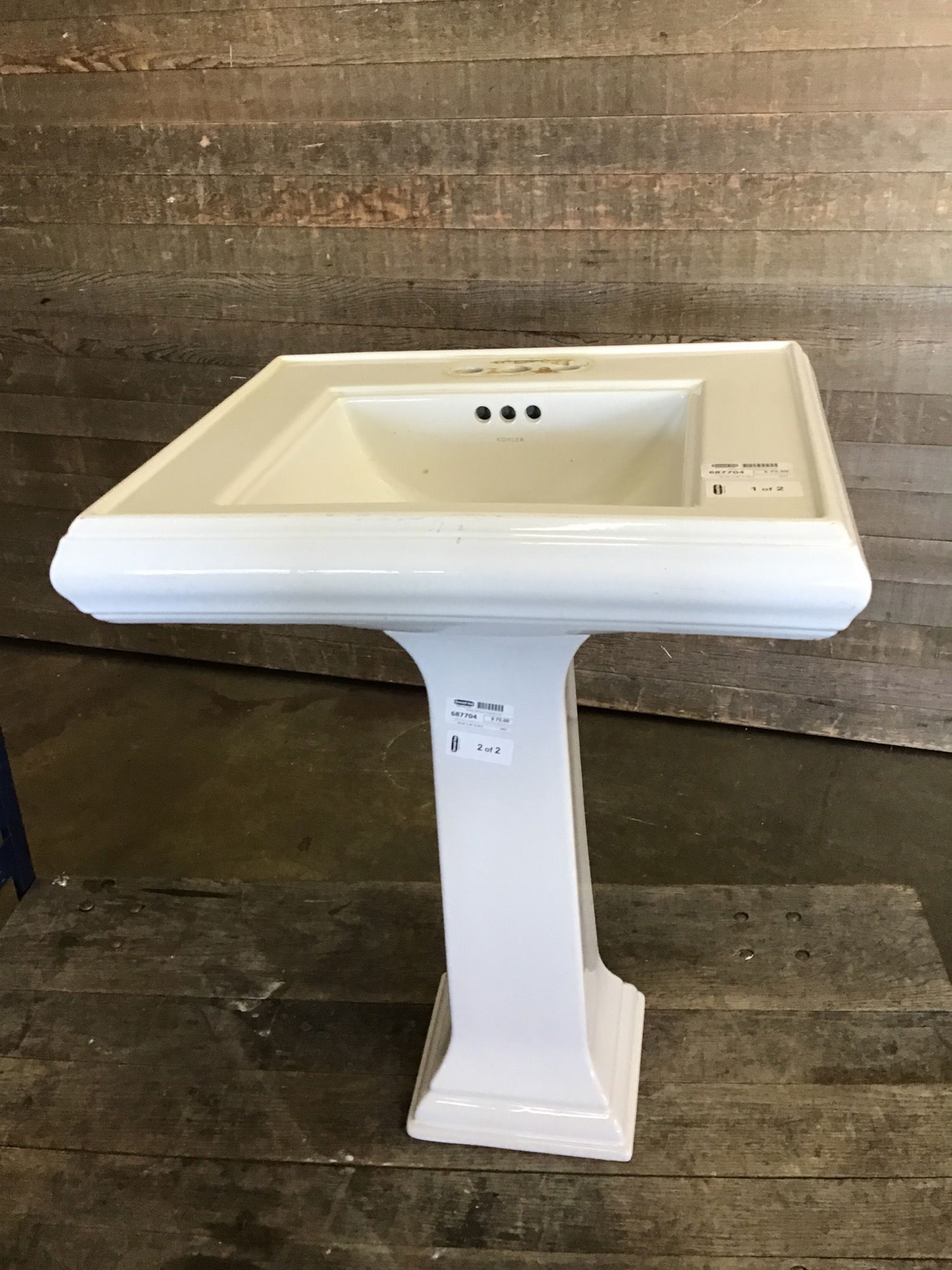 Kohler Memoirs pedestal sink. Has some minor blemishes and some crazing in the finish.