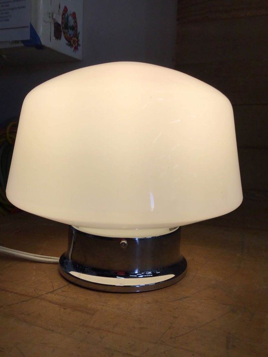Cute, Milk Glass, Schoolhouse, Semi-Flush Mount Light Shade. Has a Nice Shape and Gives Off Great Ambient Light. Comes with a Chrome Fitter.