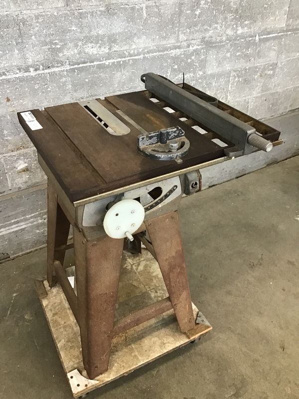 Vintage Powr-Kraft table saw. Has belt but needs to be reattached, is a bit rusty but the motor powers on and spins just fine when tested in house. Comes on a stand with four casters.