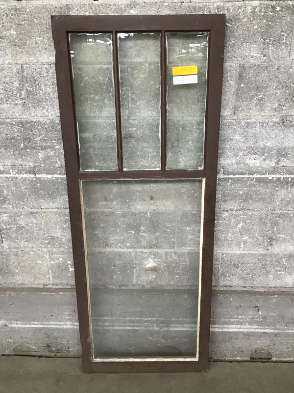 Vintage, four lite, craftsman style wood window sash with wavy glass.