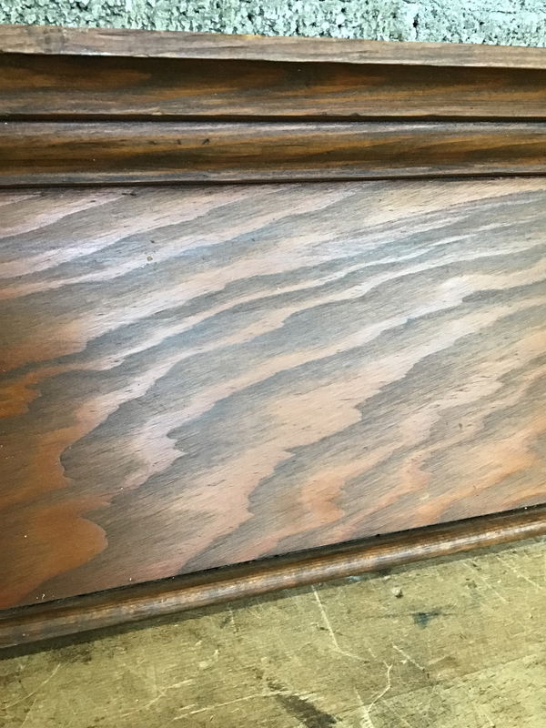 Lovely stained wood lintel with and equally lovely wood grain. Would look grand in a craftsmen style home.