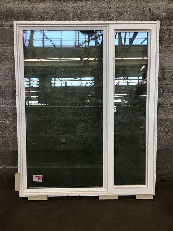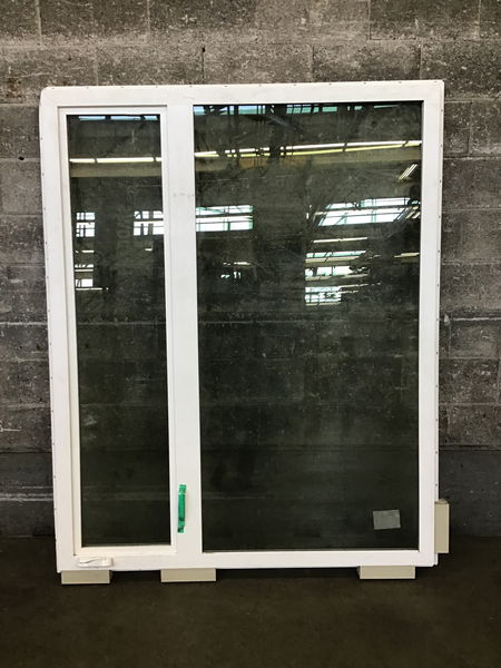 Big casement window with about a 1/3 casement section-on the right side from the exterior. Appears to be never installed.