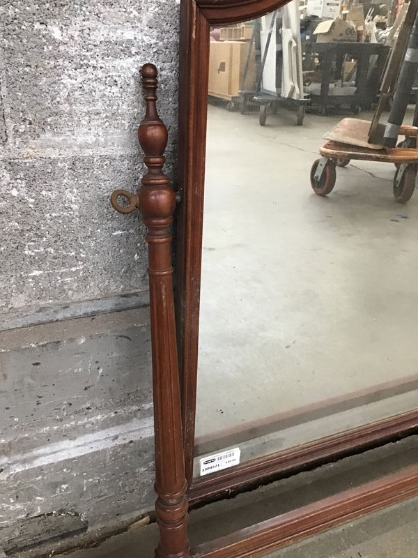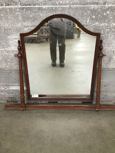 Lovely vintage mirror that tilts nicely within its turned wood frame. Would look great on top of a dresser or on the wall.