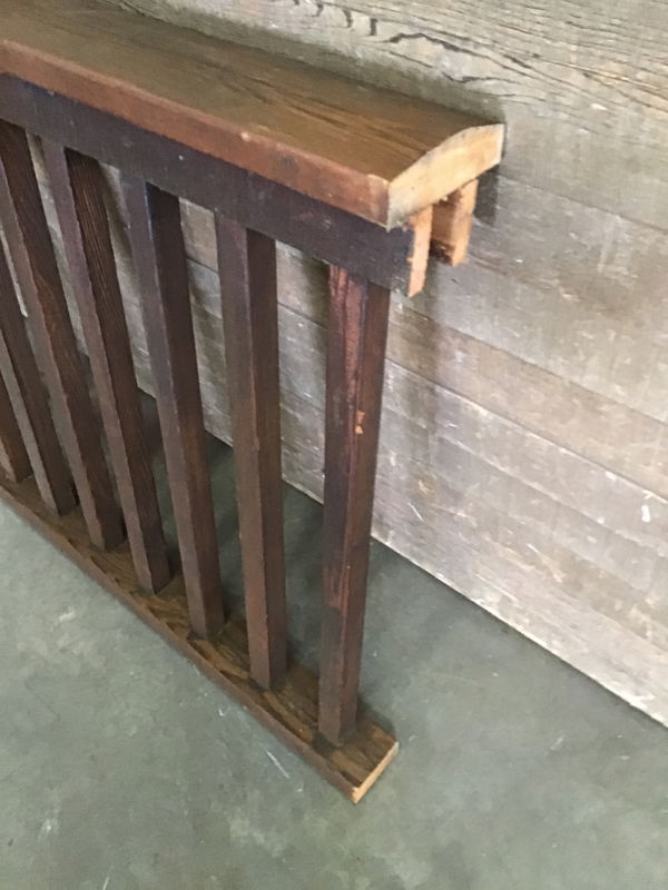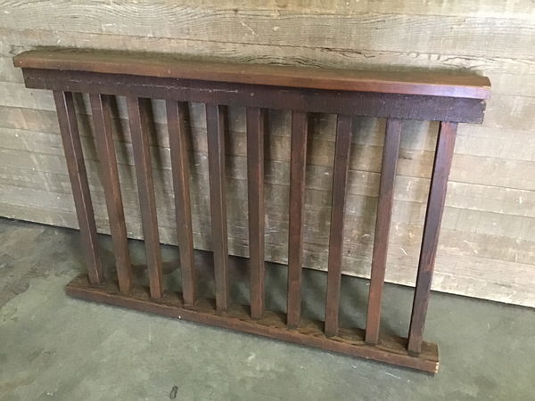 Pretty, solid & clear Western Red Cedar railing with a dark stain in good, used condition. Meets code for spacing at 3.5" between balusters and is good to go! Top rail is 5.25" deep and bottom rail is 3.375"