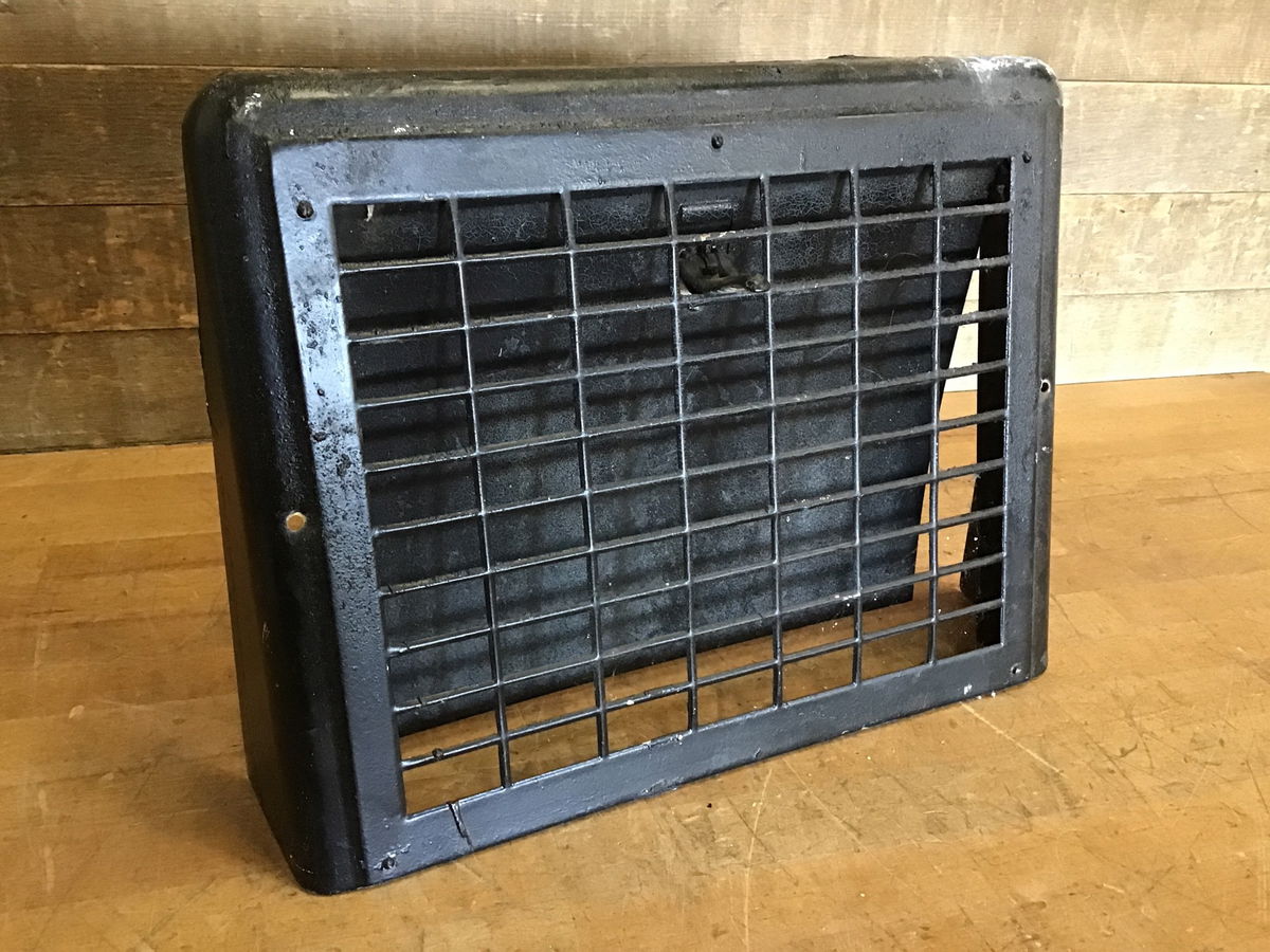 Nice vintage steel heating great in good, used condition. Simple lattice face with the open/close mechanism working as it should.