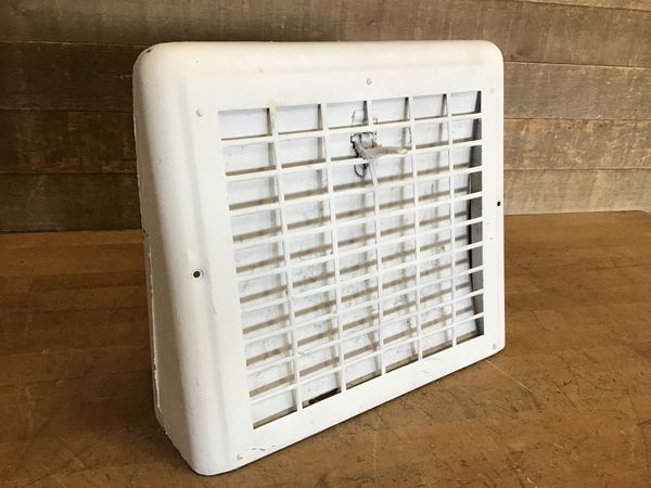 Nice vintage steel heating great in good, used condition. Simple lattice face with the open/close mechanism working as it should.