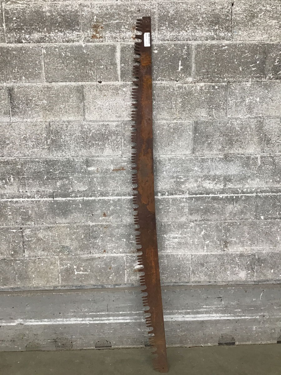 Antique two person handsaw blade (aka "misery whip" due to the physical exertion required to operate). Great for rustic wall decor in a workshop or bar.