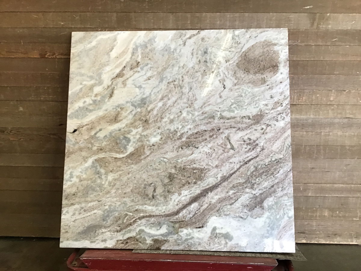 A pretty granite countertop that would be perfect for a kitchen island or any large surface. It's a mix of whites, tans and browns in coloration with a cool stripey pattern, and all sides are finished and smooth. Total square footage is about 17.25 SF, price reflects this.