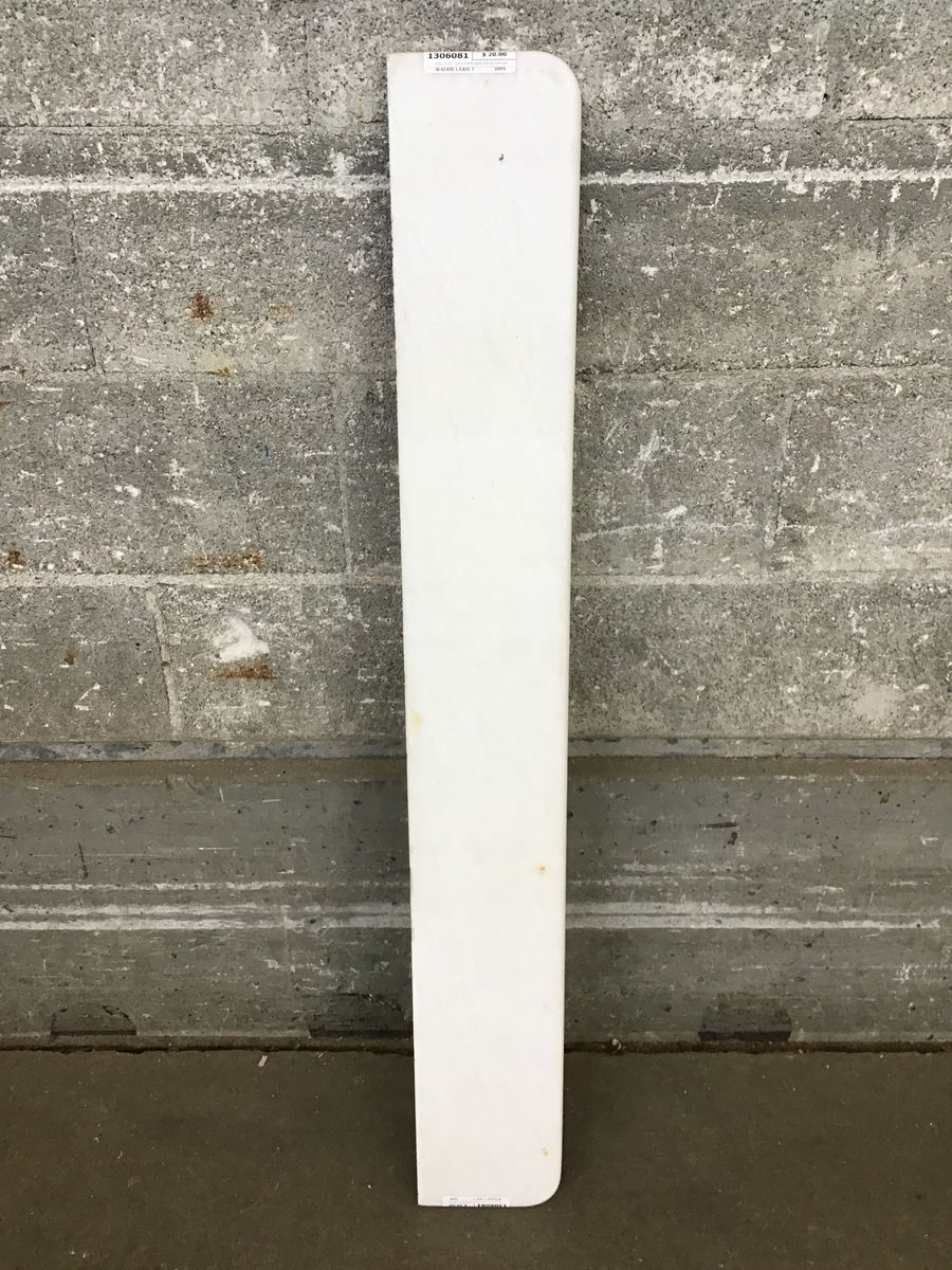 Piece of what I believe is white quartz that has a bull nose finished on three sides and radius corners on the front side. Could make a fine shelf if you don't need a backsplash.