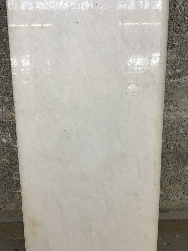 Piece of what I believe is white quartz that has a bull nose finished on three sides and radius corners on the front side. Could make a fine shelf if you don't need a backsplash.