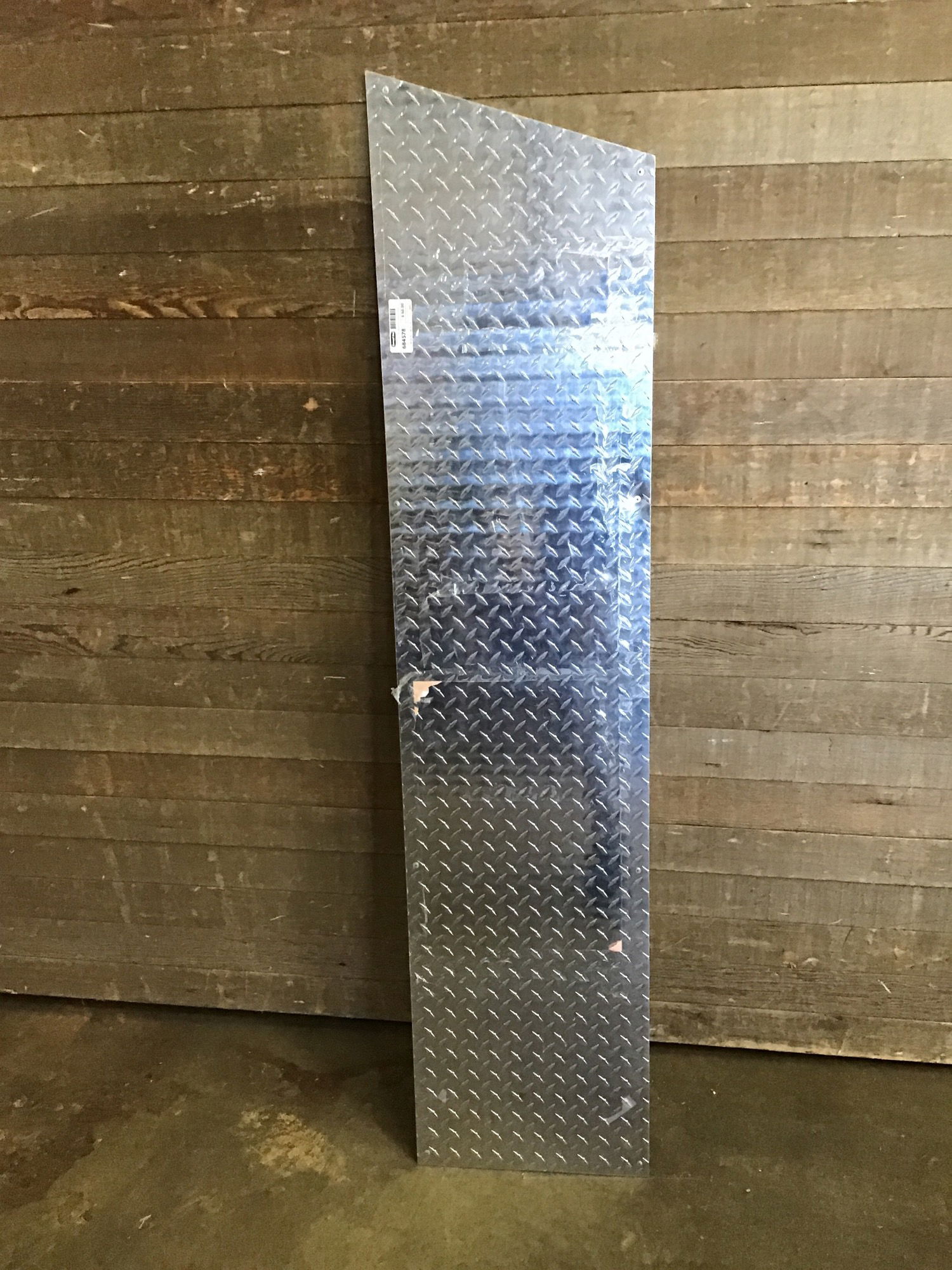 Piece of 1/8" thick aluminum diamond plate. Has some rivets along the edges.