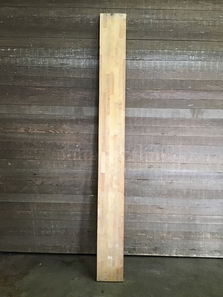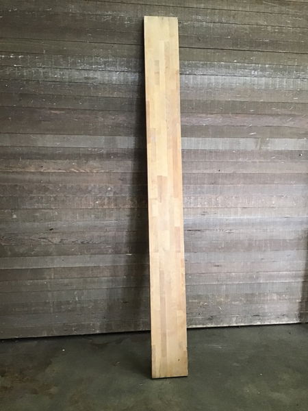 Solid 8' birch butcher block shelving originally cut down for use on a bartop. May need a good sanding and has yellowed a bit from UV exposure but overall would be perfect for use as shelving or smaller counter space. Price reflects condition.